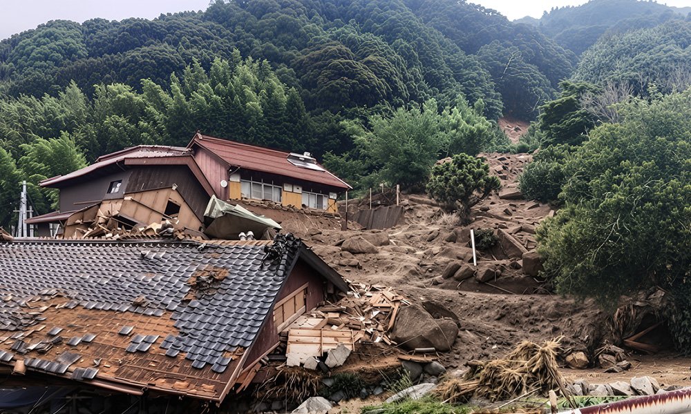 Japan’s mountainous terrain poses a high landslide risk. Homes in affected areas can be destroyed by soil movement or avalanches. Insurance premiums are high, and damage recovery is slow and costly.